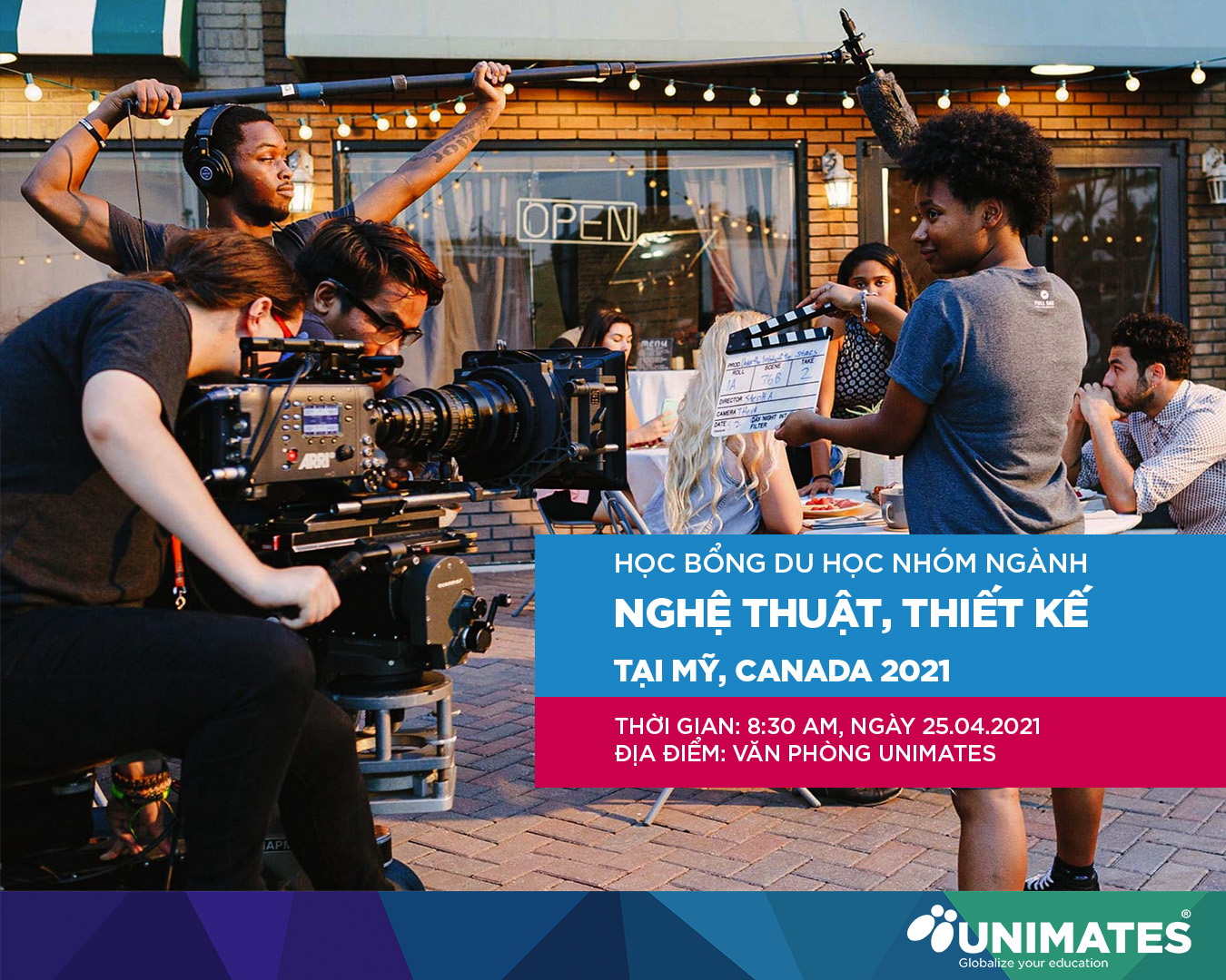 Trung tâm tư vấn du học UNIMATES Education phối hợp cùng trường đại học Full Sail University và Toronto Film School tổ chức buổi hội thảo Học Bổng Du Học Các Nhóm Ngành Nghệ Thuật, Thiết Kế Tại Mỹ, Canada 2021.
