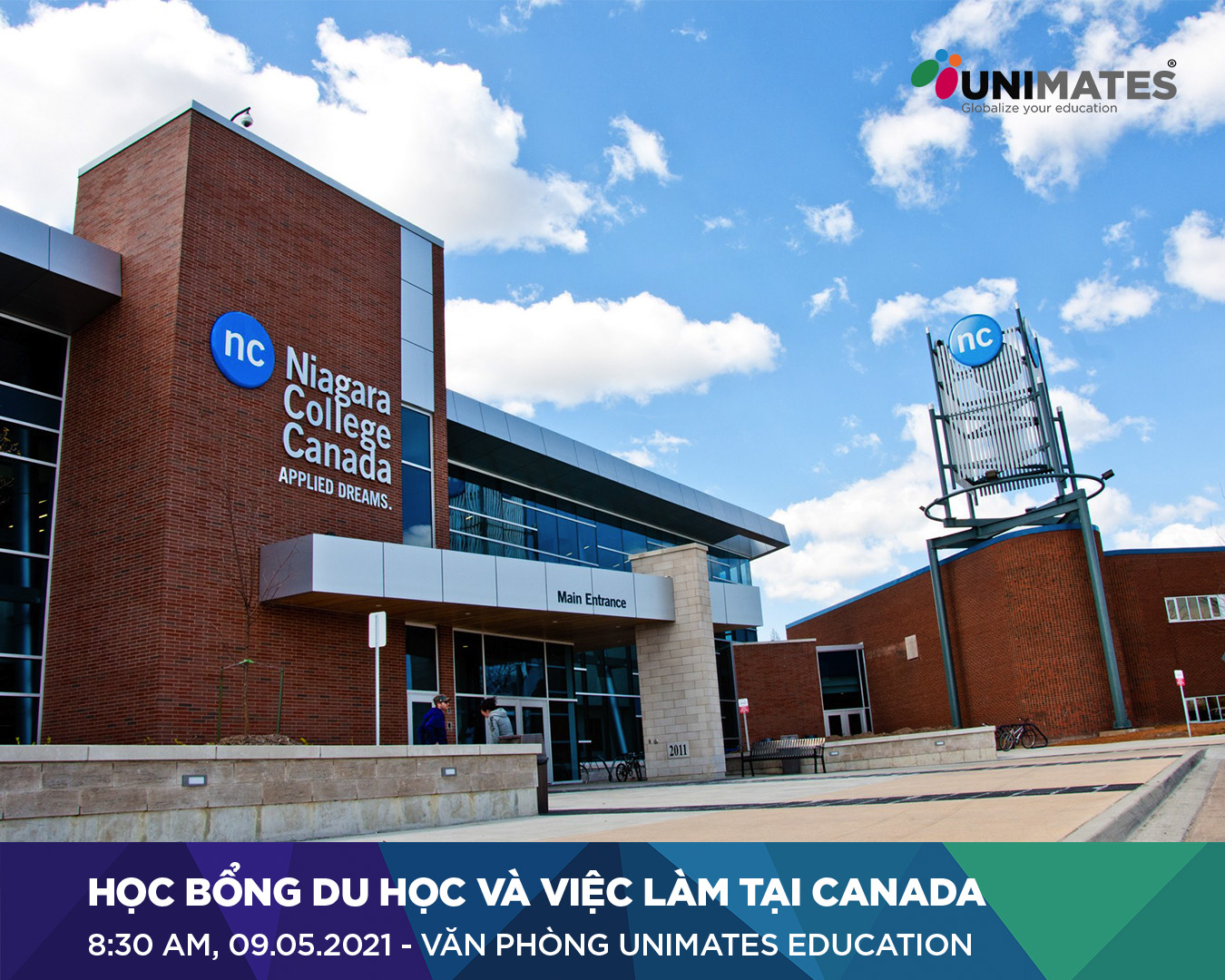 Trung tâm tư vấn du học UNIMATES Education phối hợp cùng trường Niagara College – Toronto tổ chức buổi hội thảo Học bổng du học và việc làm Canada 2021. Buổi hội thảo sẽ cung cấp cho phụ huynh, học sinh những thông tin chính xác, đầy đủ nhất về học bổng du học tại Niagara College – Toronto cùng cơ hội việc làm tại Canada sau tốt nghiệp.