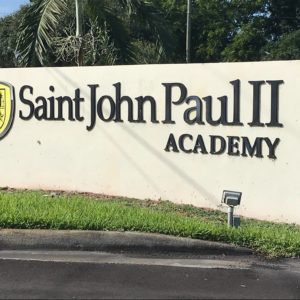 Tọa lạc tại vùng Boca Raton, Florida, Saint John Paul II Academy cung cấp môi trường để học sinh trở thành các học giả và các thành viên tích cực của cộng đồng. Saint John Paul II Academy cung cấp chương trình học dự bị đại học, mang tính cạnh tranh Học sinh có thể khám phá các lĩnh vực học thuật mà mình yêu thích thông qua các khóa học danh dự và nâng cao, cùng với các khóa học kép để tích lũy tín chỉ đại học.