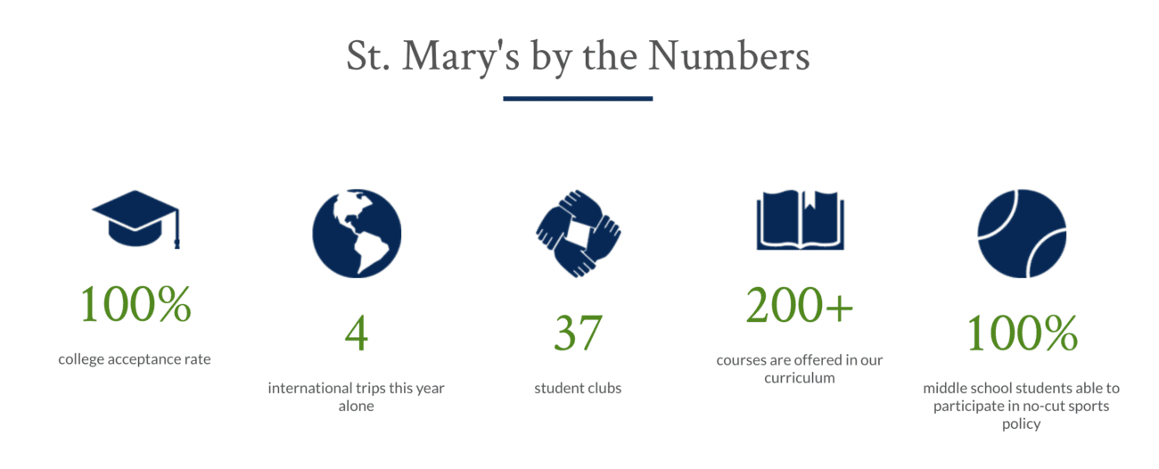 Hơn 150 thành lập và phát triển, St Mary’s School (trường trung học St Mary) là trường trung học nội trú uy tín tại Mỹ và cũng là trường trung học tốt nhất tại Oregon. St. Mary’s School kết hợp chương trình giảng dạy giữa phương pháp giáo dục truyền thống và hiện đại. Với hơn 300 khóa học, học sinh có cơ hội lựa chọn môn theo ý thích nhằm khơi dậy đam mê và thử thách chính bản thân mình.