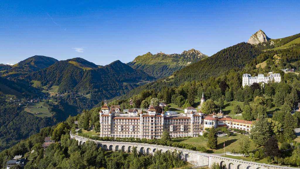 Nằm cao hơn Montreux và được xây dựng vào năm 1902, Caux Palace là một trong những khách sạn lớn nhất, hiện đại nhất và xa hoa nhất từng được thiết kế. Các nhân vật nổi tiếng như hoàng tử tương lai của Ả Rập Saudi, Hoàng tử Ibn Saud, tác giả người Anh Rudyard Kipling, doanh nhân người Mỹ John D. Rockefeller và gia đình Kellogg và Gillette đã đến thăm cho đến khi Thế chiến thứ Hai bùng nổ. Sau chiến tranh, Caux Palace đã đóng một vai trò quan trọng trong các nỗ lực hòa bình và hòa giải trên toàn thế giới. Năm 1994, nó trở thành trường Swiss Hotel Management School.