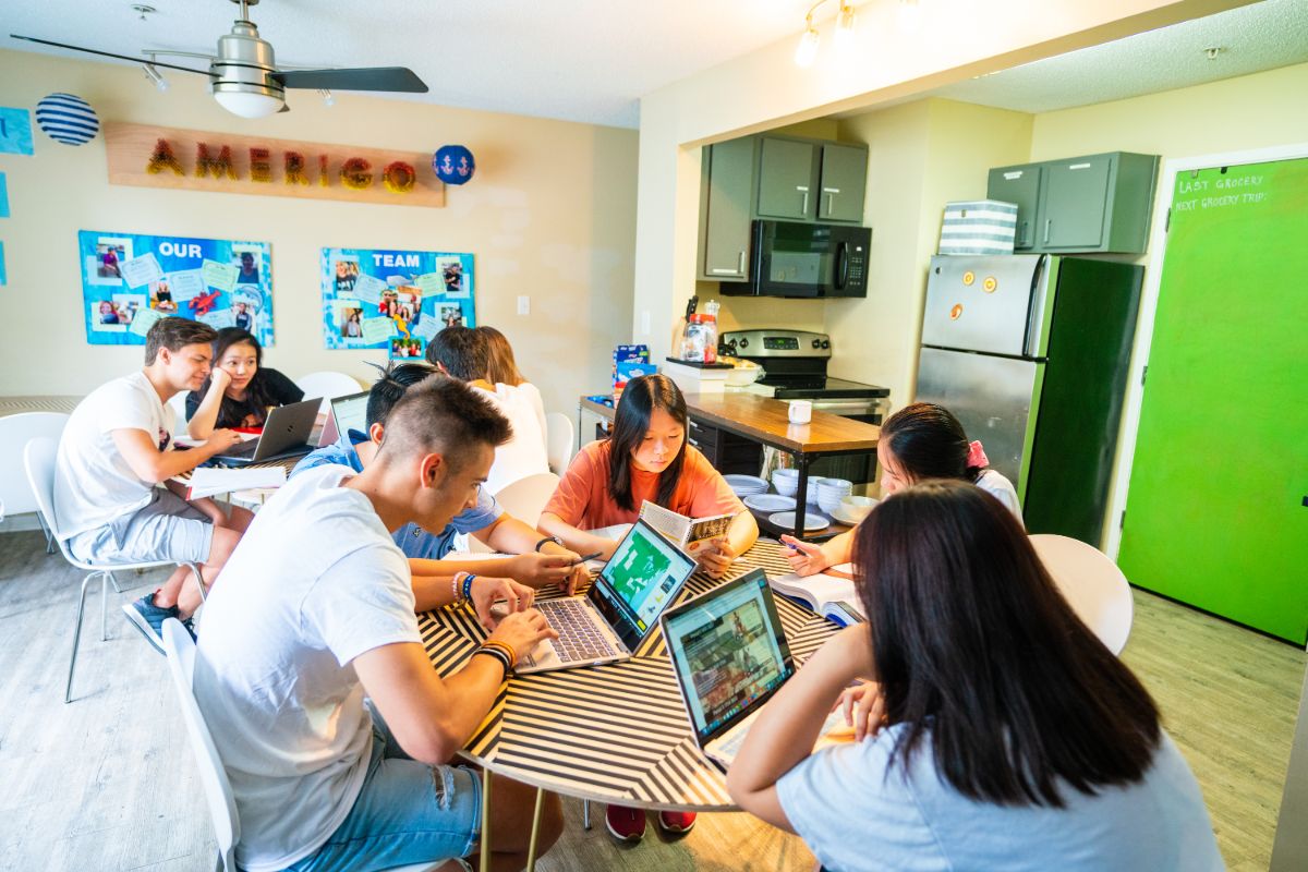 Học sinh sẽ sống cùng bạn bè quốc tế trong ký túc xá nội trú cao cấp, gần trường học, được chăm sóc 24/7 bởi đội ngũ nhân viên chuyên nghiệp, hỗ trợ nâng cao tiếng Anh, chuẩn bị hồ sơ Đại học và giao lưu, hoà nhập với văn hoá Mỹ, trở thành những “công dân toàn cầu” năng động và tự tin.